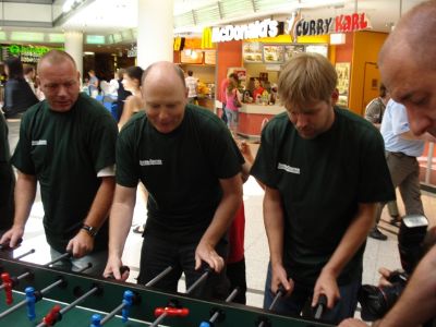 27.06.2010 Nach dem ersten Spiel beim XXL Soccer Cup 2010 im Sterncenter können wir uns noch berechtigte Hoffnungen auf den Gesamtsieg machen. Nach der unglücklichen 118 : 1 Niederlage müssen wir am Mittwoch nur die beiden anderen Spiele gewinnen und schon sind wir in der Finalrunde. Wer uns anfeueren möchte - nächsten Spiele am Mittwoch dem 30.06.2010 um 18:30 Uhr und um 19:45 Uhr. Wir sind das Team "Bauarbeitermarmelade". Man riecht sich.