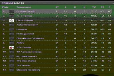 30.03.2009 Da ich vergangene Woche nicht mitgespielt habe nur eine kurze Zusammenfassung die Dank eines Informanten ermöglicht wurde. Das Spiel endete erneut siegreich 3:2 für die Mannen von Dynamo. Das knappe Ergebnis spiegelt aber nicht die Spielanteile wieder, da die beiden Tore von TKD wohl eher Zufallsprodukte waren und Dynamo sich mal wieder im Auslassen von Großchancen auszeichnete. Mein Informant berichtete von Einbahnstraßen-Fußball und das er nicht mal richtig geschwitzt gewesen sei. Vielen Dank an meinen Informanten und an die gesamte Truppe von Dynamo für den Sieg !